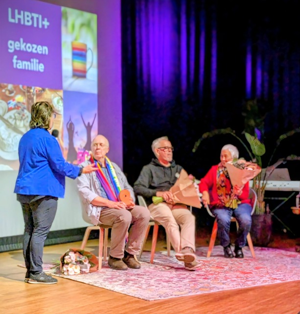 Ons Roze Stadsdorp Amsterdam was dit jubileumjaar genomineerd met 2 andere initiatieven voor de nationale Senior Pride onderscheiding voor regenboog senioren. Onze jubileum Prideboot met ook aantal Roze 50+ ambassadeurs had deze zomer indruk gemaakt en Niels Wolf als ‘trekker’ van de bootgroep mocht ons daarom vertegenwoordigen.