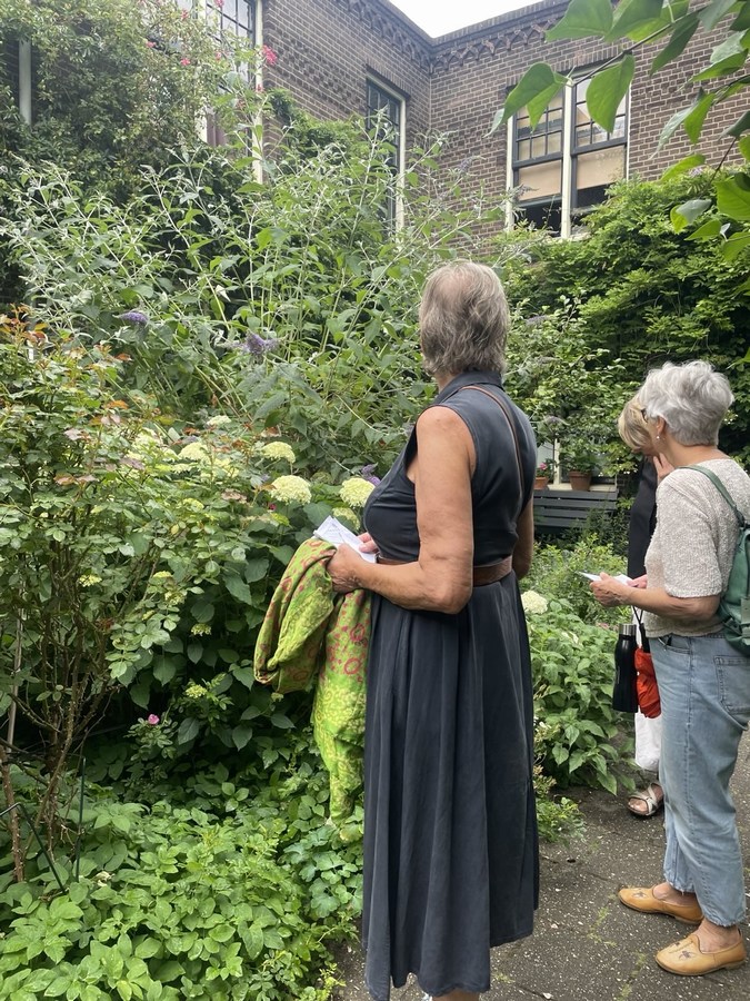 Zondag 22 juni 2025 om 11:15 uur stonden zes Stadsdorpen bij het Platanenhof, het startpunt van de Jordaan OpenTuinendag. Het was prima wandelweer, niet te warm, niet te koud en bijna helemaal droog.