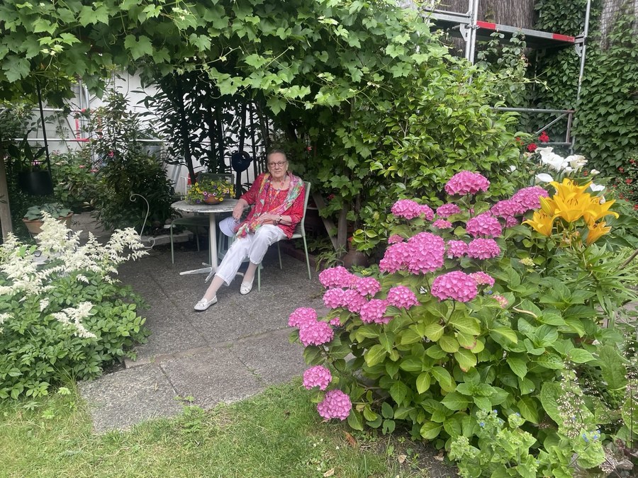 Na 13 tuinen en nog een extra tuin van één van onze Stadsdorpers bezocht te hebben, vonden we het welletjes en zijn we op de uitnodiging van Els ingegaan om bij haar in de tuin, onder het genot van een drankje, vast te stellen dat de Jordaan OpenTuinendag een mooie gelegenheid is om de groene oases in de Jordaan te ontdekken.