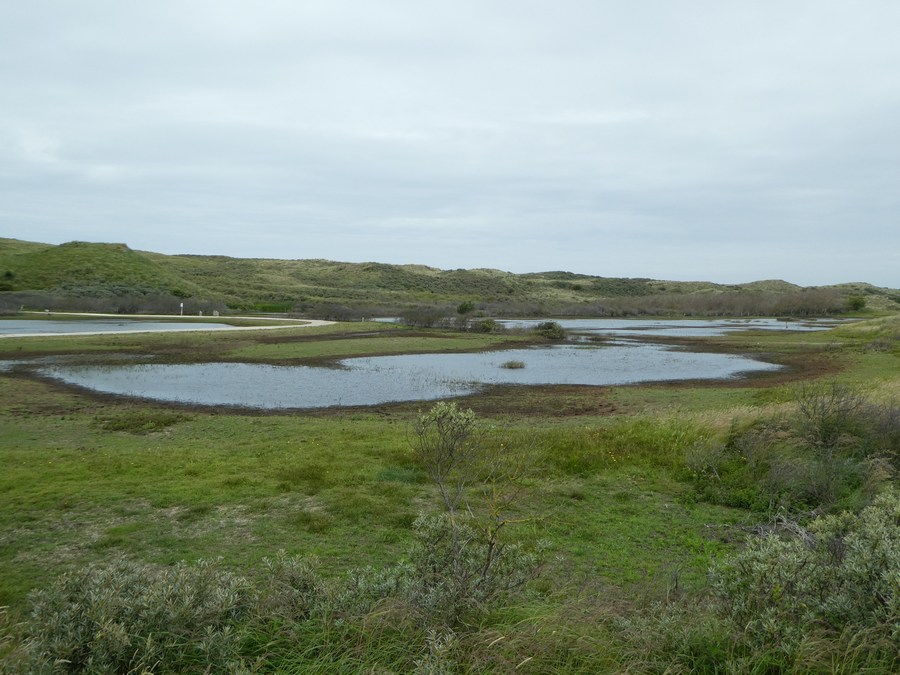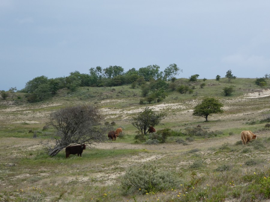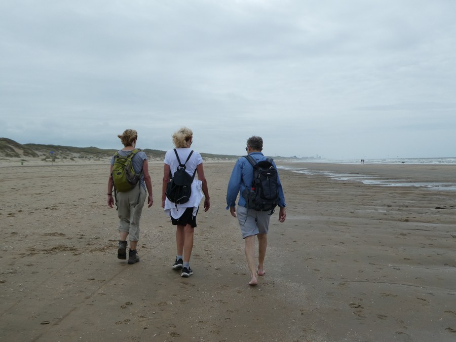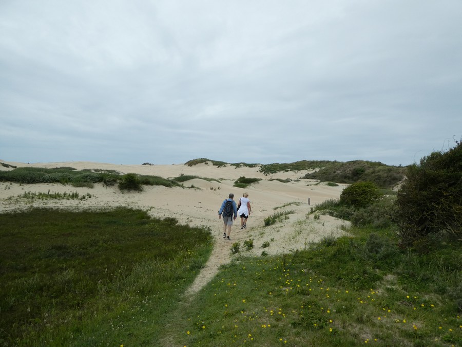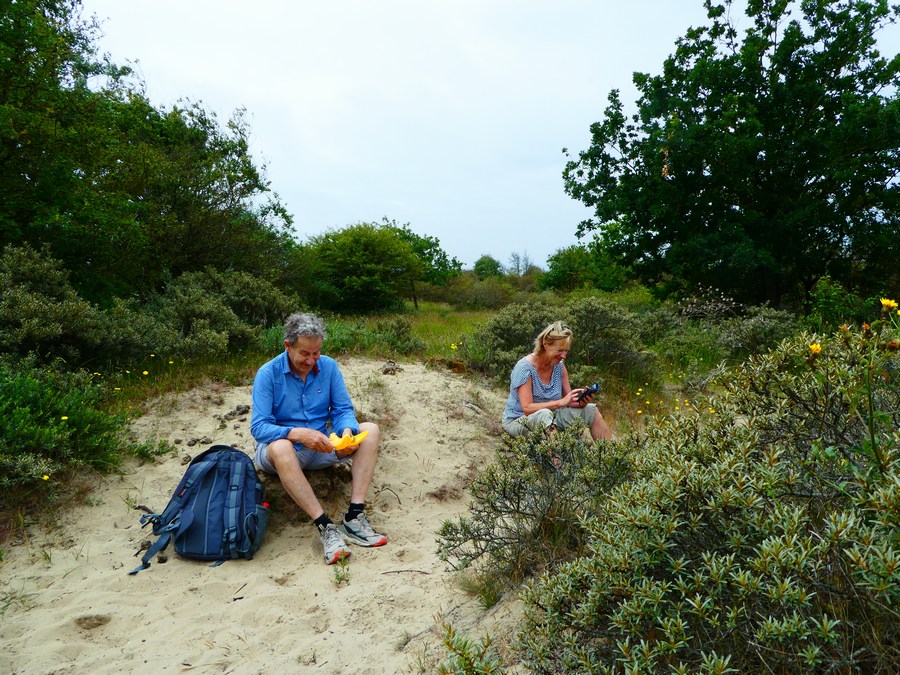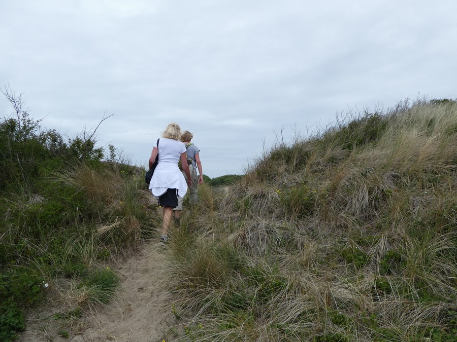 Aldaar aangekomen liepen we eerst naar uitspanning Duin&Kruitberg voor een kop koffie. Vlakbij deze aangename plek start de blauwe route richting het strand: een afwisselende en goed gemarkeerde route. Bij de zee aangekomen besloten we spontaan - want aanvankelijk was het idee om terug te lopen naar Santpoort-Noord - om over het strand naar Parnassia (3,5 km) en vandaar naar de bushalte (2 km) te wandelen. Via Haarlem waren we zo rond half 3 weer in Amsterdam.